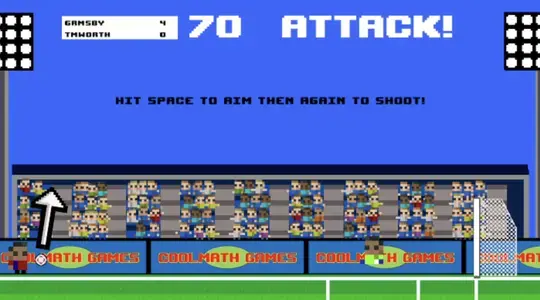 When it's game time, you'll get chances to kick and defend. When kicking, press SPACE once to set your aim and press again to set the power. When defending, use the arrow keys to move the goal keeper and press SPACE to jump.