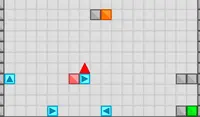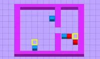 The bouncy blue block destroys the other blue blocks it touches. Hit the blue blocks in the right order to destroy them all and make it to the red block. Don't fall off of the screen!