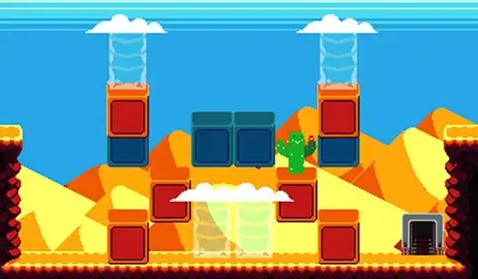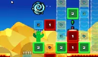 Swipe to move. Press the onscreen buttons to make blocks of that color disappear or reappear. You can climb up blocks, but only one at a time. Stay out of the water!