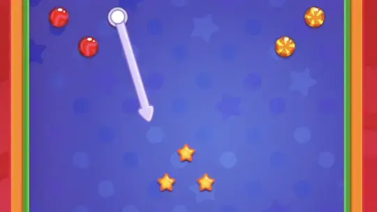 Aim and shoot the white candy disk to touch each of the other colored candy pieces. Click and hold your mouse to aim, and release to fire. Try to clear all the candy with as few shots as possible.