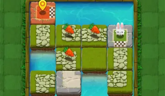Click and drag tiles to make a path from the bunny to the orange target tile. Collect all three carrots on the way for a perfect score!