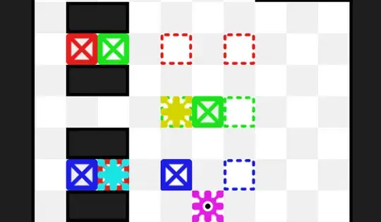 You have three colors to control: cyan, magenta, and yellow. Your goal is to get the boxes of the same color into the outline that matches with their color. To change colors, tap the color you want to control.