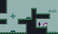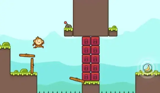Move your mouse to aim, then click to throw a coconut. Jump on a coconut to turn it into an arrow, then throw it at a wall to create a platform. Reach the banana to feed the hungry monkey.