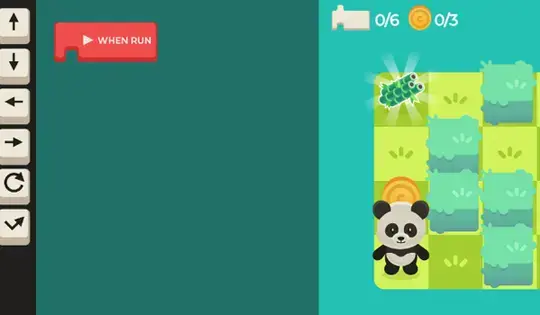 Tap the arrow in the middle of the screen to switch between the panda's map and the coding area. Tap and drag the arrow buttons on the left side of the screen to connect them to the red button. When you tap the red button, the panda will follow the commands!
