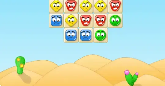 Your goal is to delete the number of colored faces that is listed on the right. To delete faces, get them in groups of three or more. Click on faces that are next to each other to switch them and form matching groups.