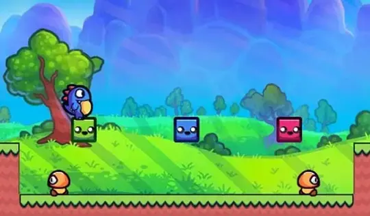 Click on the Z, X and C keys to change the color of the dino to get rid of the blocks before you get to the end. Move with the arrow keys.