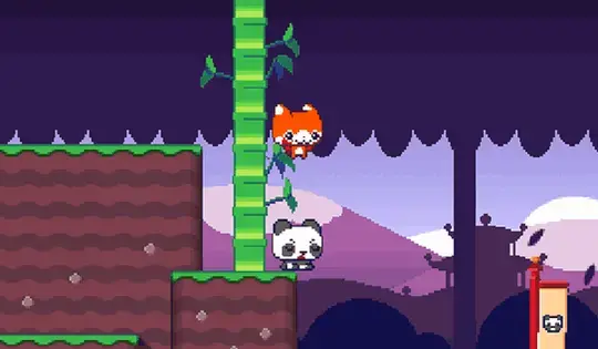 Use the arrow keys to move. Press Spacebar to switch which panda you are controlling. Red Panda can climb bamboo stalks. Giant Panda can defeat enemies by jumping on them. Both pandas can jump on each other's heads.