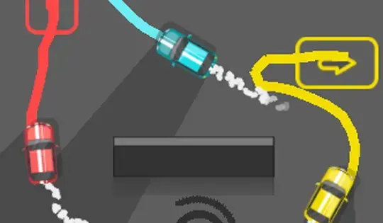 When you've finished drawing your path, hit "Start" and watch your cars go. Make sure they don't crash!