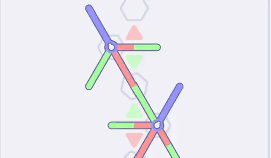 Your goal is to rotate the lines to form closed shapes around the triangles. Click on a spinning pad to rotate all the lines connected to that pad. The enclosing shape must match the color of the triangle.