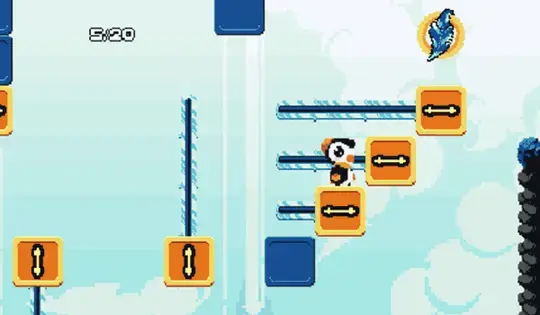Use the on-screen buttons to move and jump. Tap an orange block to slide it. Keep jumping on blocks to grab the blue feather!
