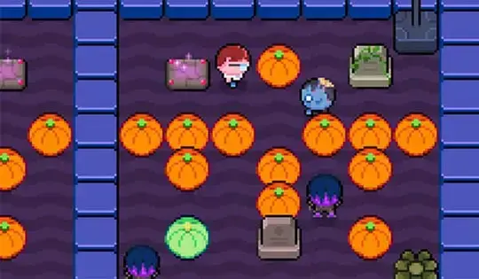 Use the arrow keys to move. Press SPACEBAR to push pumpkins when you are standing near them. Push a pumpkin into a zombie to destroy it. You can also destroy orange pumpkins by pushing them when they are next to a wall.