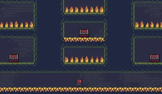 Use WASD or the Arrow Keys to move and jump. Press X to teleport downward through the wall. You can't teleport through gray walls. Reach all the chests to set the villagers free!