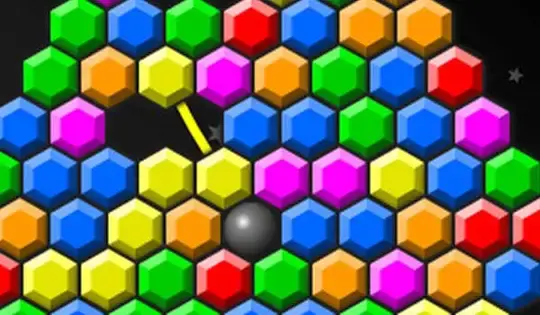 Click on two hexagons of the same color to make them explode. You can only click two if they can be connected by a line with 1 bend in it or less.