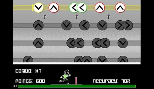 To jump over the Hurdles, players must hit the notes that pop up on the screen. These notes can be hit using the arrow keys or the WASD keys.