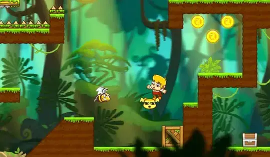 Move Jo with the arrow keys. Move Momo with WASD. Jo can jump on Momo to reach higher platforms. Both of them can press buttons and levers to open new paths. Collect coins and reach the door to beat the levels!