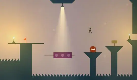 Make your way through the level safely. Use the left and right arrow keys or A and D to move left and right. Need to jump? There's no jump button! Instead, you need to run off of a ledge, which will make your character jump. Touch a flag to save your progress. Stuck in the level? You can press R to go back to your last flag, or hold R to reset the level entirely.