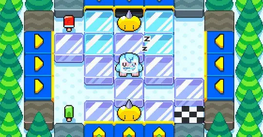 Yeti monster is hungry! Use your mouse to slide the ice blocks and clear a path for the yeti to eat. When he's full, make sure he reaches the finish line.