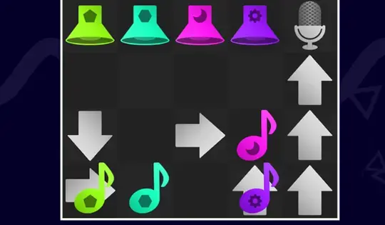 Drag the arrows on the grid to guide the musical notes to the microphone. Objects flashing white are movable, meaning the mic can sometimes be moved.