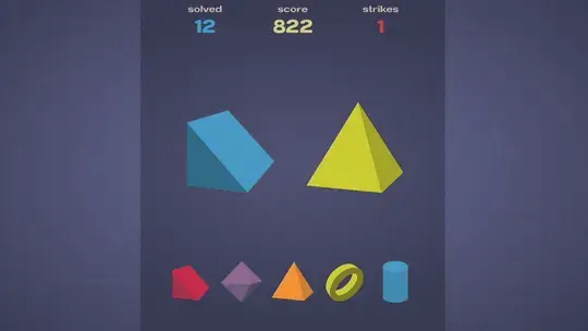 Each round, you are presented with two large shapes at the top of your screen. Below them, you will see five smaller shapes, only one of which is the correct shape. To find the correct shape, first look for one that EXACTLY MATCHES one of the two large shapes in both shape and color. If you can't find an exact match, instead look for a shape that has NOTHING IN COMMON with either of the two shapes. Once you've figured it out, tap on the correct shape before ten seconds elapses.