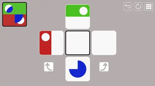 Tap on a shape to flip it onto the center panel. Your goal is to layer shapes in the right order and match the image in the upper-left corner!
