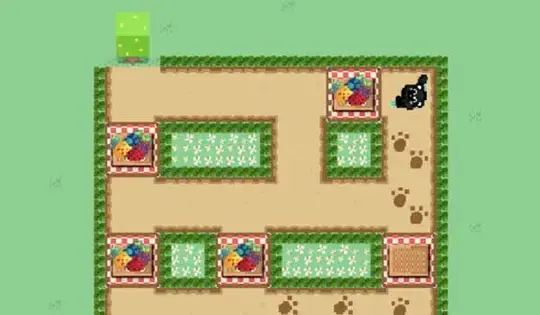 Draw a path for the bear to eat all the picnic food and reach the big tree. To create a path, tap on the step marks. To undo your path, tap on the last step mark selected. When ready, tap play to set the bear loose.