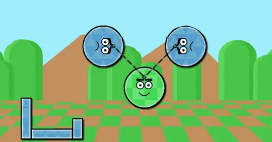 The purple shapes have invaded! You need to get rid of them... But, you need to save the green shapes! The hard part is that there are 4 different gravity directions that they'll fall, so you have to pay close attention to which way they'll drop! Click on purple shapes to get rid of them. You cannot click on purple shapes that are sticking their tongues out at you... So, you'll have to figure out another way to get them to leave.