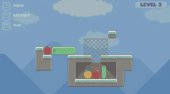 Your goal is to get the baby worms fed! Tod do this, you need to push the fruits into the hole so the baby worms can eat. You can climb along grates to help you reach high fruits and fix your position.