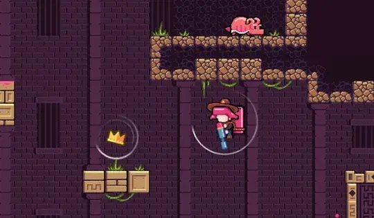 Refill ammo by jumping into the color pools. Find all the gold treasures in each level, then walk to the exit door and press E to leave. But the best treasure hunters will stick around to find the two extra-secret red gems in every level!