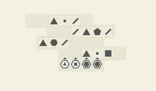 Click and drag to slide a row of shapes. Each shape counts for the number of sides it has (for example, a square counts for 4). Dots count as one side, and lines count as two. Your goal is to make each column add up to the same number of sides as the outer shape at the bottom of that column.