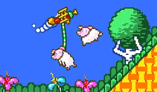 Hold UP to accelerate. Press LEFT and RIGHT to turn. Grab sheep in your claw by flying over them, and then place them in their homes to drop them off. Once you have saved enough sheep, land slowly on the landing pad to finish the level. Watch out for wolves, who will eat your sheep. And don't crash into any walls!