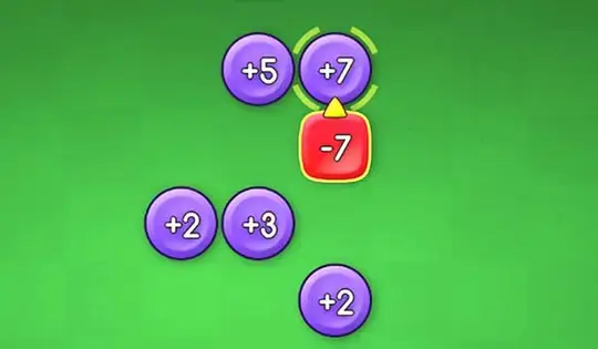 Drag a negative number from the bottom row and place it next to a positive tile above. The new tile will be added to all adjacent tiles. Your goal is to use every tile and make everything equal to zero.