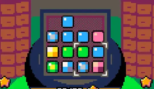 Tap the Circle Button to grab the fruit and tap the Arrows to move it in the cauldron. Match 3 of the same color fruits in a row to combine them into stronger fruit! You can hold the Circle Button and press the Arrow Keys to rotate the blocks into a better position.