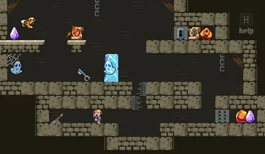 Use WASD or the arrow keys to move and jump. Grab a scroll to learn a new spell. Each spell is cast with one of the number keys and has a different elemental power. If you find a level too hard, you can hold down H for a hint.
