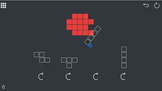 To remove red blocks, drag a white-outlined shape from the bottom of the screen onto the red blocks above. The red blocks will only be removed if they match the shape exactly. If the shape doesn't fit, tap on the Rotate icon under each shape to rotate it before placing it.