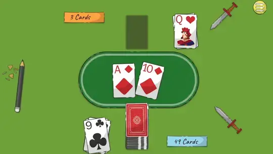 If you are playing with a bot, click on your card to draw it. If you are playing with a friend, one player will press S to draw a card and the other player will press the UP arrow.