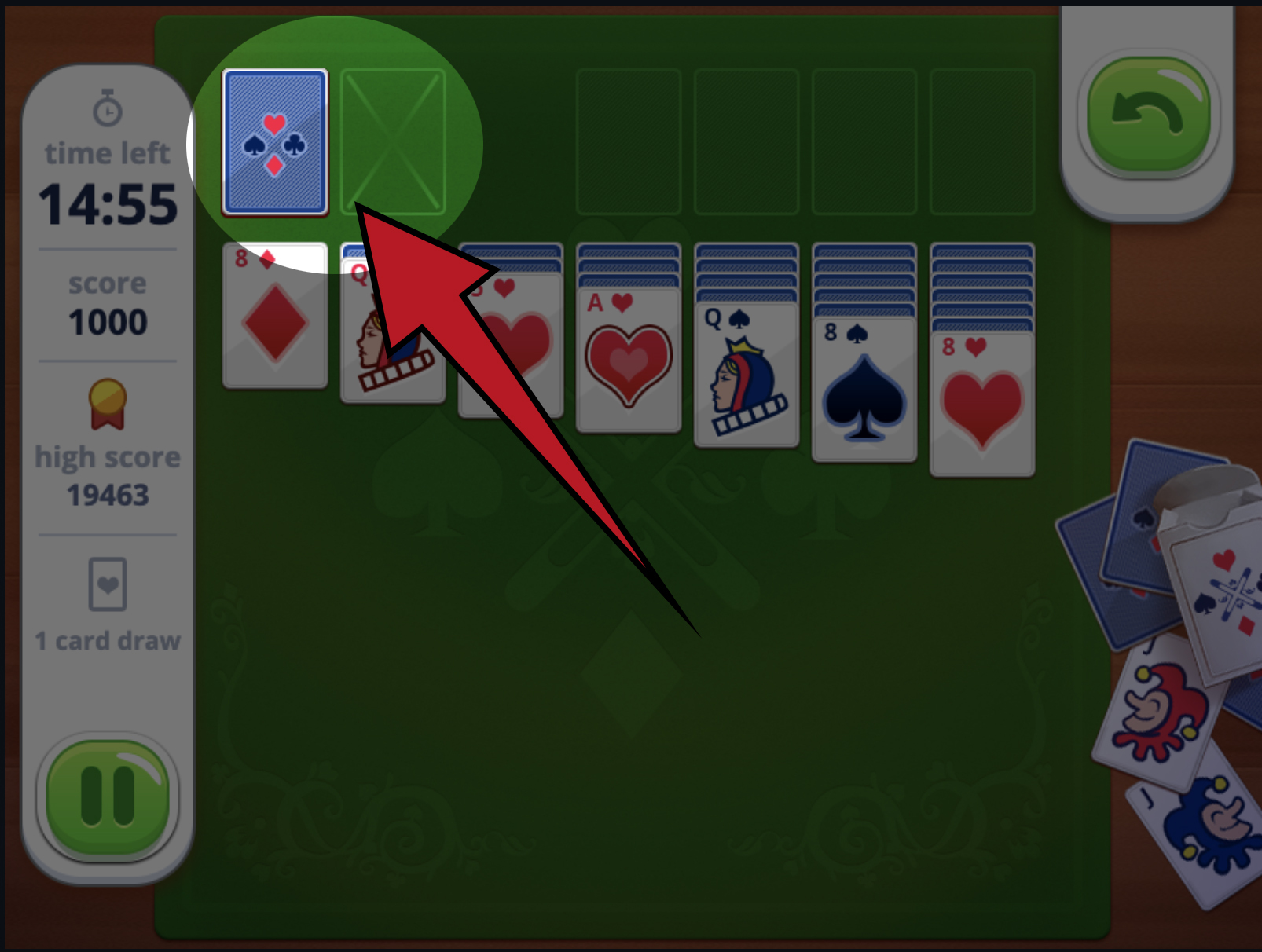 The stock deck holds all the remaining cards that weren’t used to fill the tableau. Depending on the rules you set, you either draw one or three cards from this pile when there are no moves left on the tableau.