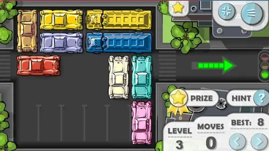 Estos atascos de tráfico pueden volverse bastante complicados. A veces tendrás que mover un auto en una dirección para desalojar a otro auto y luego moverlo hacia atrás. Si te quedas atascado, toca los botones izquierdo y derecho para deshacer o rehacer tu último movimiento. También puedes tocar el botón de pista para ver el siguiente movimiento correcto, pero no serás elegible para obtener ninguna clasificación de estrellas en este nivel una vez que uses una pista.