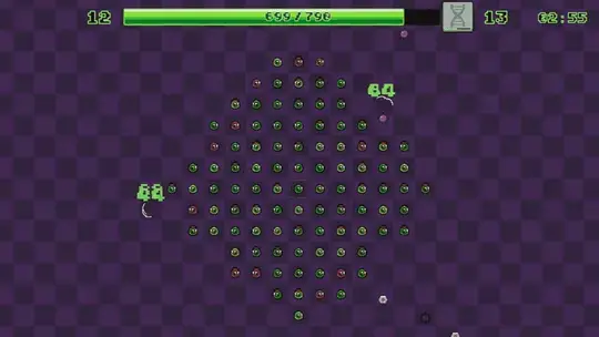 Les améliorations sont disponibles en quatre niveaux de rareté : COMMUNE, RARE, ÉPIQUE et LÉGENDAIRE. Elles peuvent améliorer vos dégâts, vos PV ou le taux d'apparition de vos blobs (la vitesse à laquelle ils se multiplient). Certaines améliorations augmentent l'EXP gagnée en vainquant des ennemis, vous aidant à monter de niveau plus rapidement. D'autres confèrent à vos blobs des capacités spéciales, comme un bouclier gelé ou le pouvoir d'attaquer en diagonale. Choisissez judicieusement vos améliorations pour maximiser votre survie.