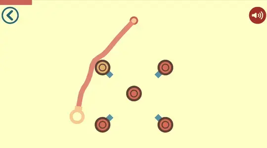 Cliquez et faites glisser l'anneau au bout de la corde pour l'étendre. Votre objectif est d'étendre la corde pour qu'elle touche chaque nœud circulaire orange. Une fois que vous avez touché tous les nœuds, vous devez attendre quelques secondes pendant le jeu pour vous assurer que vous les avez correctement connectés.