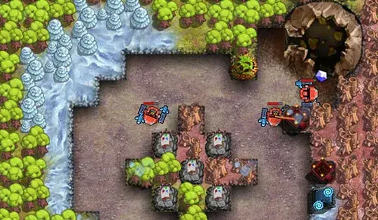 आपका कीमती खजाना चुराने के लिए दृढ़ संकल्पित रोबोट सेना वापस आ गई है! आग, बर्फ और भौतिक टावरों का निर्माण करके उनका बचाव करें। सबसे पहले, इसे चुनने के लिए दाईं ओर मेनू से एक टावर टैप करें, फिर इसे बनाने के लिए उसी रंग की खुली जगह पर टैप करें। एक बार जब रोबोट करीब आ जाएंगे, तो आपके टावर अपने आप शूट हो जाएंगे। हर बार जब आप रोबोट को नष्ट करते हैं तो आप सोना कमाते हैं। उस सोने को और अधिक टावर जोड़ने के लिए खर्च करें या अपने बचाव को मजबूत करने के लिए उन्हें अपग्रेड करें।