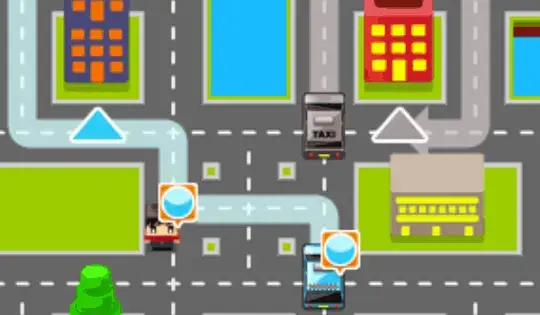 आपका लक्ष्य सभी यात्रियों को उनके गंतव्य तक पहुंचाना है। एक कार पर क्लिक करें और पथ खींचने के लिए खींचें। एक बार जब आप अपने रास्ते से खुश हो जाते हैं, तो टैक्सियों को चलाना शुरू करने के लिए स्क्रीन के नीचे स्थित प्ले बटन दबाएं।