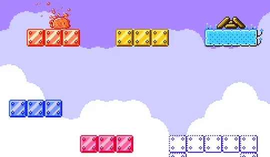 Usa i tasti freccia o WASD per muoverti e saltare. Accendi tutti i fuochi. Quando tocchi un cubetto di ghiaccio dall'alto o dal basso, inizierà a sciogliersi, quindi non restarci sopra per troppo tempo. Fai attenzione agli altri blob, assicurati di non toccarli.