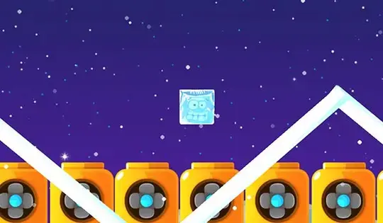 クリックしたままにすると氷になり、山を滑り降ります。氷の状態にあるときとそうでないときでは、オブジェクトとのやり取りが異なるため、クリックしたり離したりして切り替えを続けることを忘れないでください。