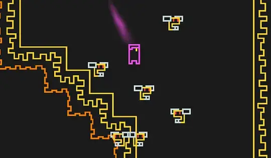 AとDを使って横に移動し、悪者をかわします。落下すると、バッテリーが消耗します... ゼロにならないように注意してください!各レベルの後、バッテリーの再充電と引き換えに統計を弱めるオプションがあります。次のレベルを通過するのに十分なバッテリーがあると思われる場合は、4 を押してトレードをスキップし、パワーを維持します。